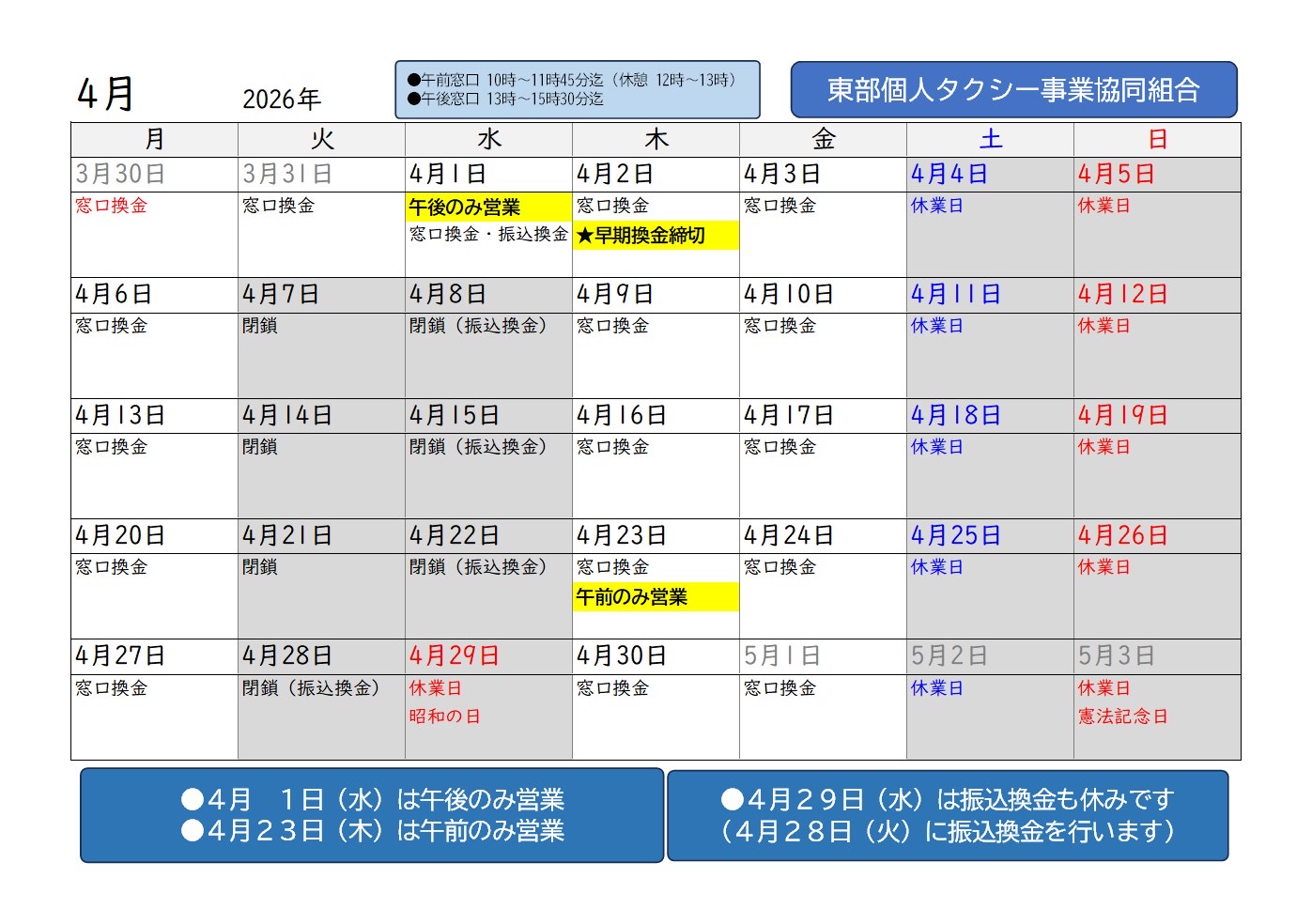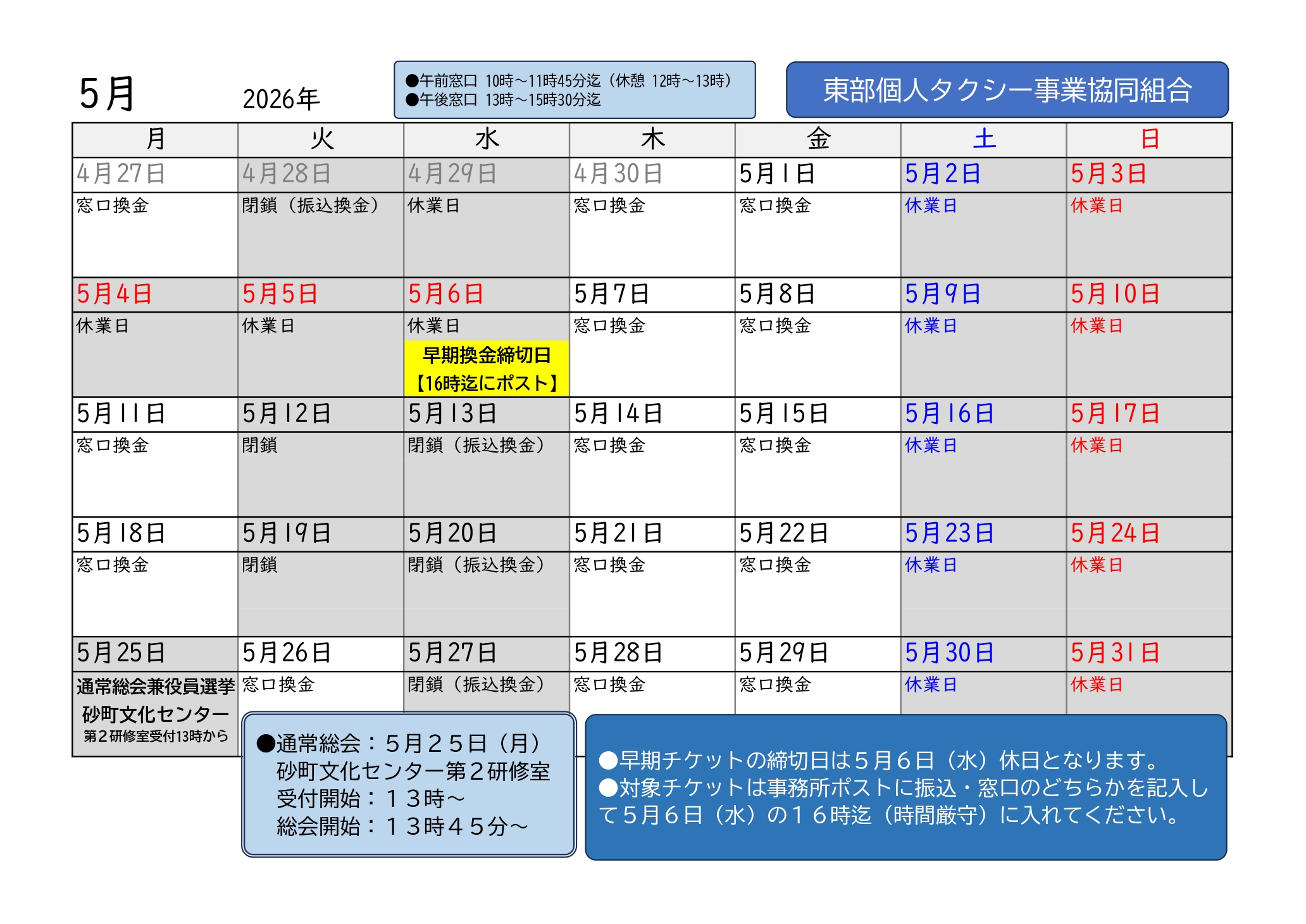 窓口カレンダー
